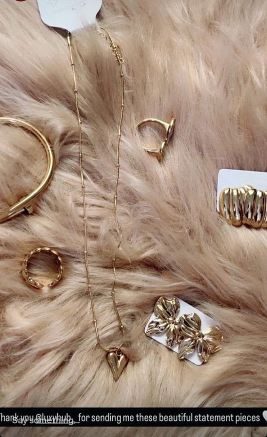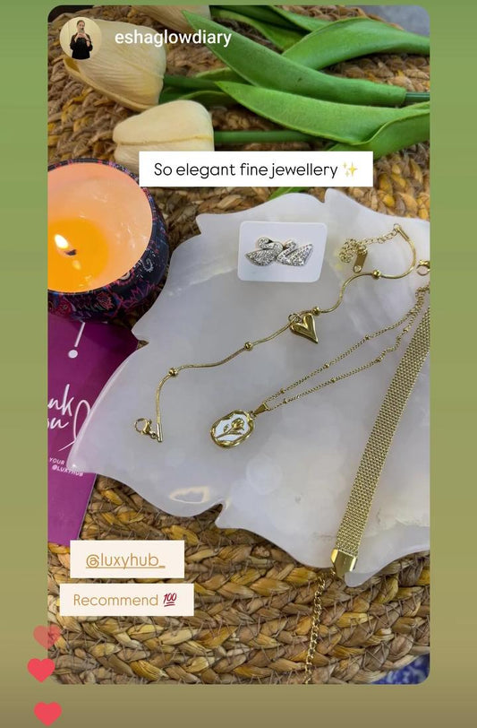 18k Gold Stainless Steel Heart Bracelet Necklace Waterproof Jewelry Set