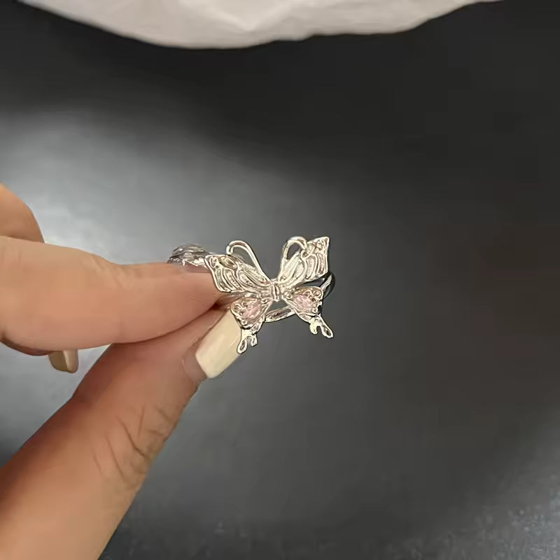 Embrace the perfect blend of sweet and chic with this adorable Ribbon Bow Ring. The intricately detailed silver-tone bow is beautifully finished with two sparkling pink heart-shaped crystals, adding a touch of playful romance to your look.