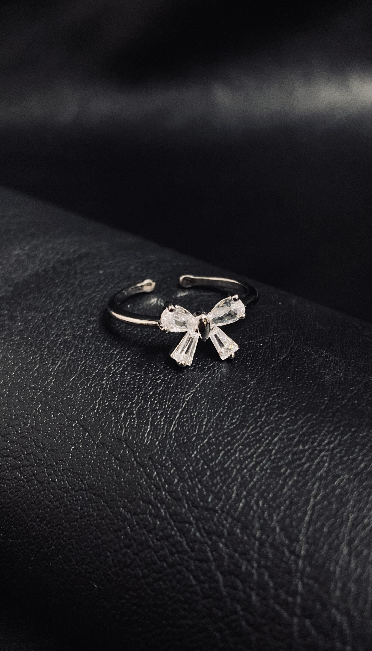 Shop the Adjustable Crystal Ribbon Ring at LuxyHub — elegant, waterproof, and crystal-detailed silver jewelry designed for timeless everyday shine.
