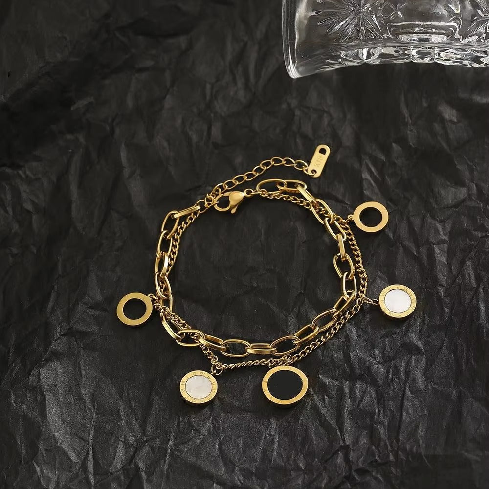 Add a touch of timeless charm to your style with this Black & White Shell Roman Numeral Bracelet. Crafted from premium titanium steel, it’s durable, elegant, and designed to shine for every occasion. The double-layer design with Roman numerals adds a modern yet classic touch — perfect for daily wear or gifting.