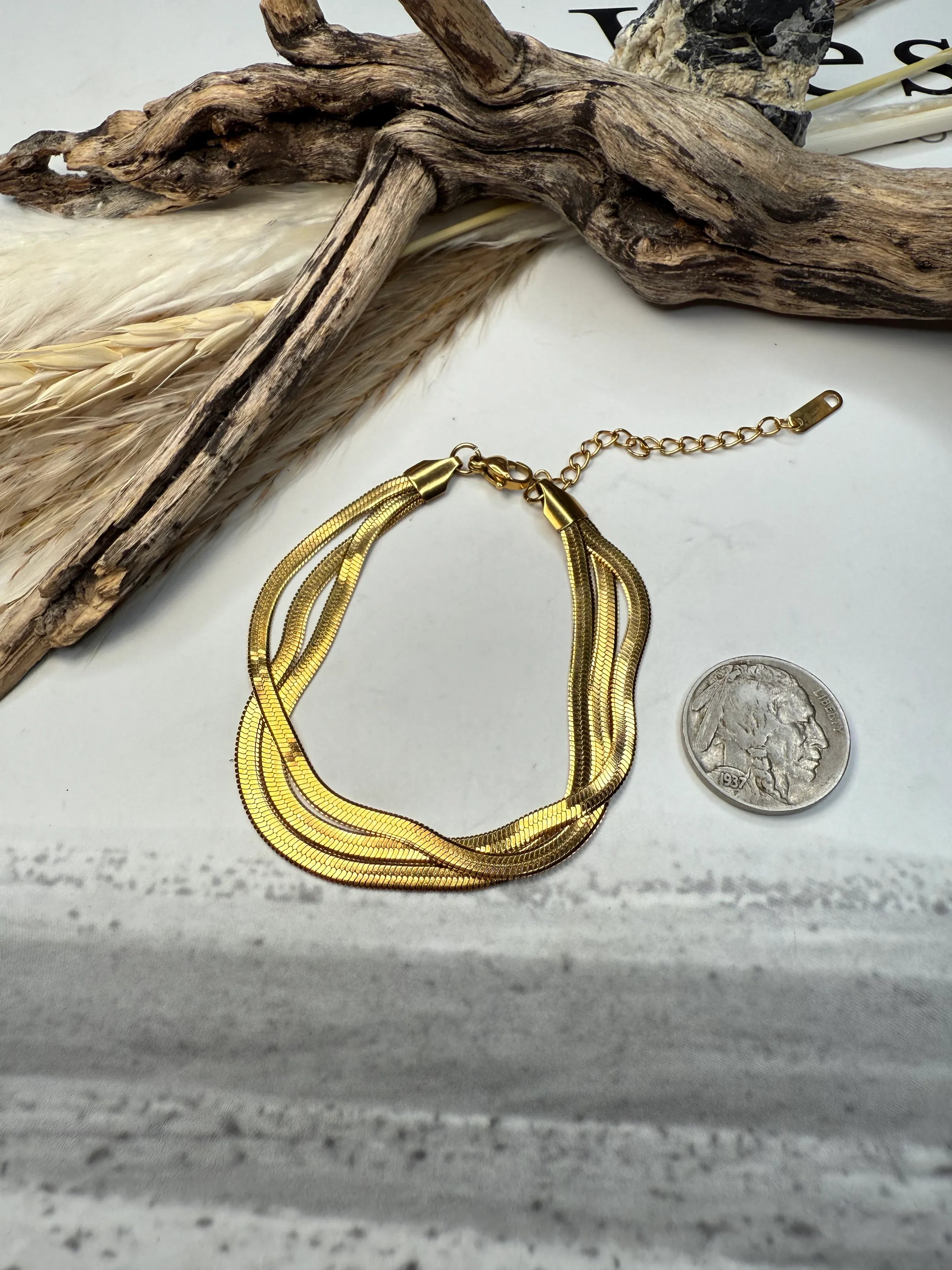 Shine with style! ✨ This Triple Herringbone Bracelet adds a bold, elegant touch to any outfit. Crafted with high-quality gold plating, it’s trendy, durable, and perfect for daily wear. Ideal for layering or wearing solo — a true luxury essential for modern women.