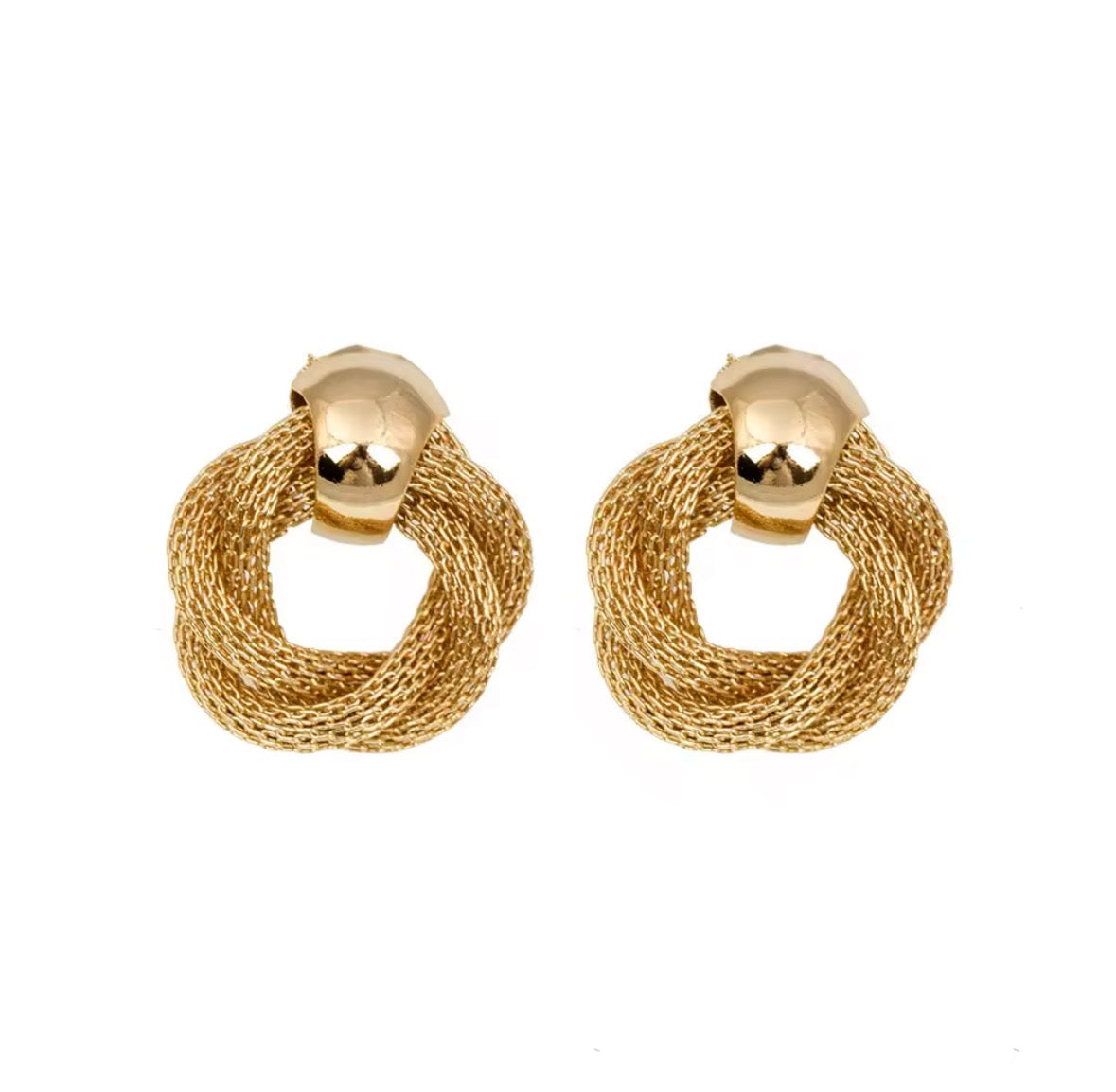 Small gold earrings with a rope design. Made delicately with gold polish. it is airy, light and perfect for any event.