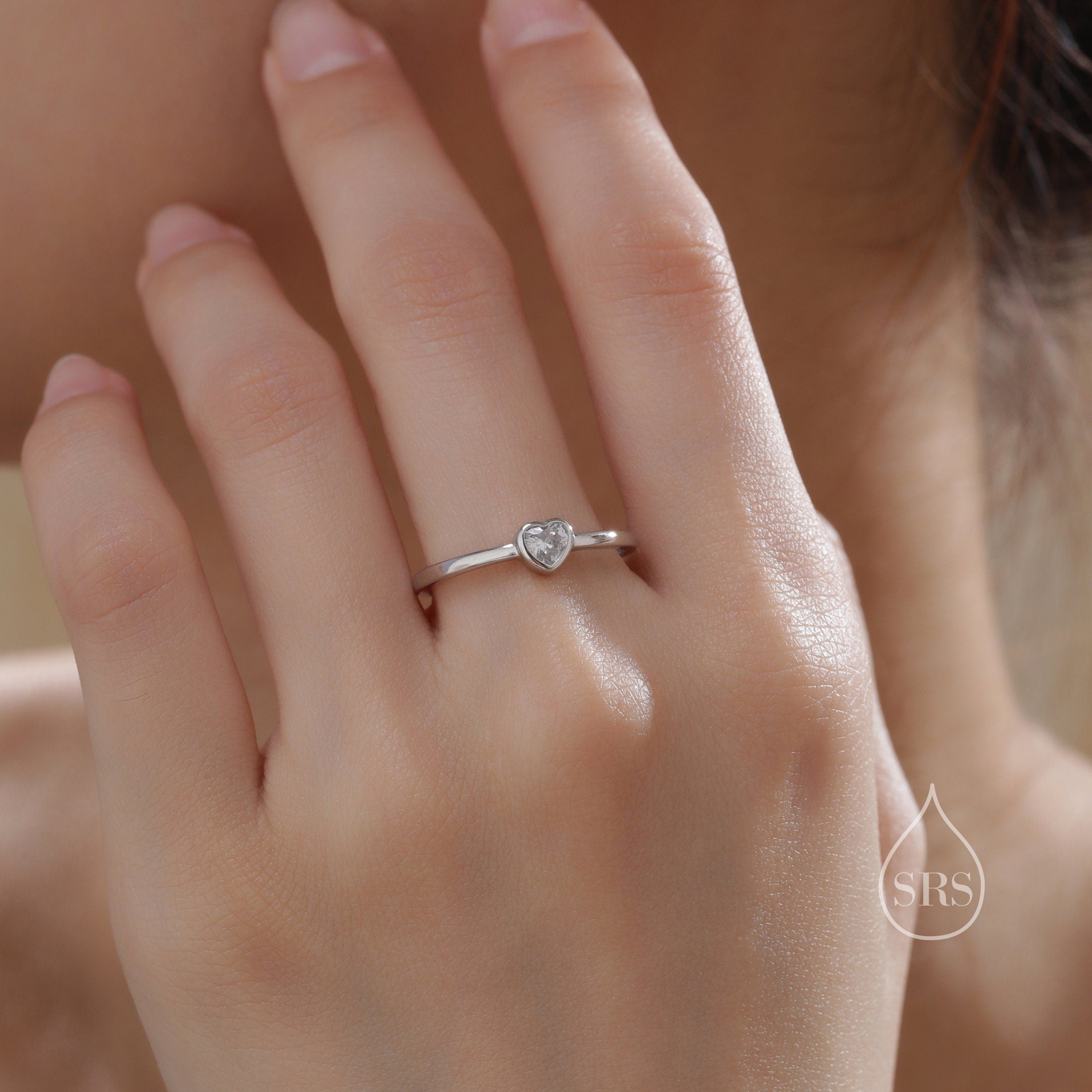 Sterling Silver Very Tiny CZ Heart Ring, Adjustable Size, Small Heart Ring, Tiny Heart Ring, Tiny CZ Heart Ring